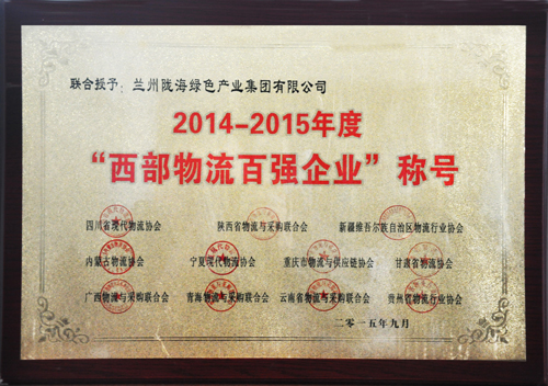 2014-2015年度西部物流百?gòu)?qiáng)企業(yè)榮譽(yù)稱號(hào)