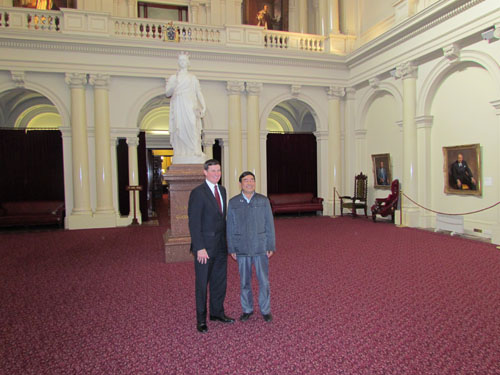 7月29日考察團前往墨爾本,由維多利亞州聯(lián)邦自由黨籍資深國會議員、維多利亞州自由黨地方政府部部長、維多利來州國會澳中友好協(xié)會主席Ken Smith MP閣下,中澳城市峰會執(zhí)行主席、澳大利亞國際商會首席MICHAEL GUO閣下在貴會大廈會見了考察團一行,雙方就促進中澳交流與合作,企業(yè)發(fā)展等方面進行了探討與交流,并在國會大廈設宴招待了考察團一行。墨爾本位于澳大利亞的東南部,是個港口城市,總面積8831平方公里。墨爾本是澳大利亞第二大城市,是有「花園之州」美譽的維多利亞州(Victoria)的首府,也是澳大利亞的工業(yè)重鎮(zhèn)。墨爾本市民大多數(shù)居住在中央商業(yè)區(qū)周邊,大都會區(qū)共有約四百萬人,澳大利亞聯(lián)邦初立至1927年,墨爾本是澳大利亞的首都,1927年,首都遷往堪培拉。墨爾本的氣候屬于亞熱帶與溫帶交叉型氣候,最熱月通常在22℃以下,最冷月在3℃到15℃之間,終年多雨,屬于溫帶海洋性氣候。